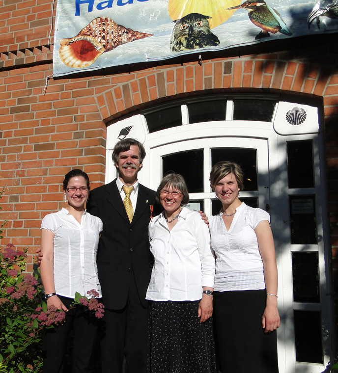 Vollrath Wiese machte in seinen Dankesworten noch einmal deutlich, dass er diese Ehrung nicht für sich in Anspruch nähme, sondern in Vertretung für die ganze Familie, von denen seine Ehefrau Gyde Wiese und die Töchter Stella und Levke an der Feierstunde teilnahmen. Außerdem dankte er ausdrücklich den weiteren Vertretern des Museumsteams, von denen Dr. Ira Richling für die Deutsche Malakozoologische Gesellschaft und Dr. Bernd Sahlmann für den Verein zur Förderung der Naturkunde in Cismar e.V. zusammen mit Bürgermeister Mark Burmeister aus Grömitz die Lobby des Museums in Kiel vertraten. Vollrath Wiese verglich seine Stellung im Haus-der-Natur-Team mit der Situation im ökologischen System in der Natur: "alles ist mit allem vernetzt" oder noch besser mit dem Cismarer Wahlspruch "een Steen alleen mahlt nich".